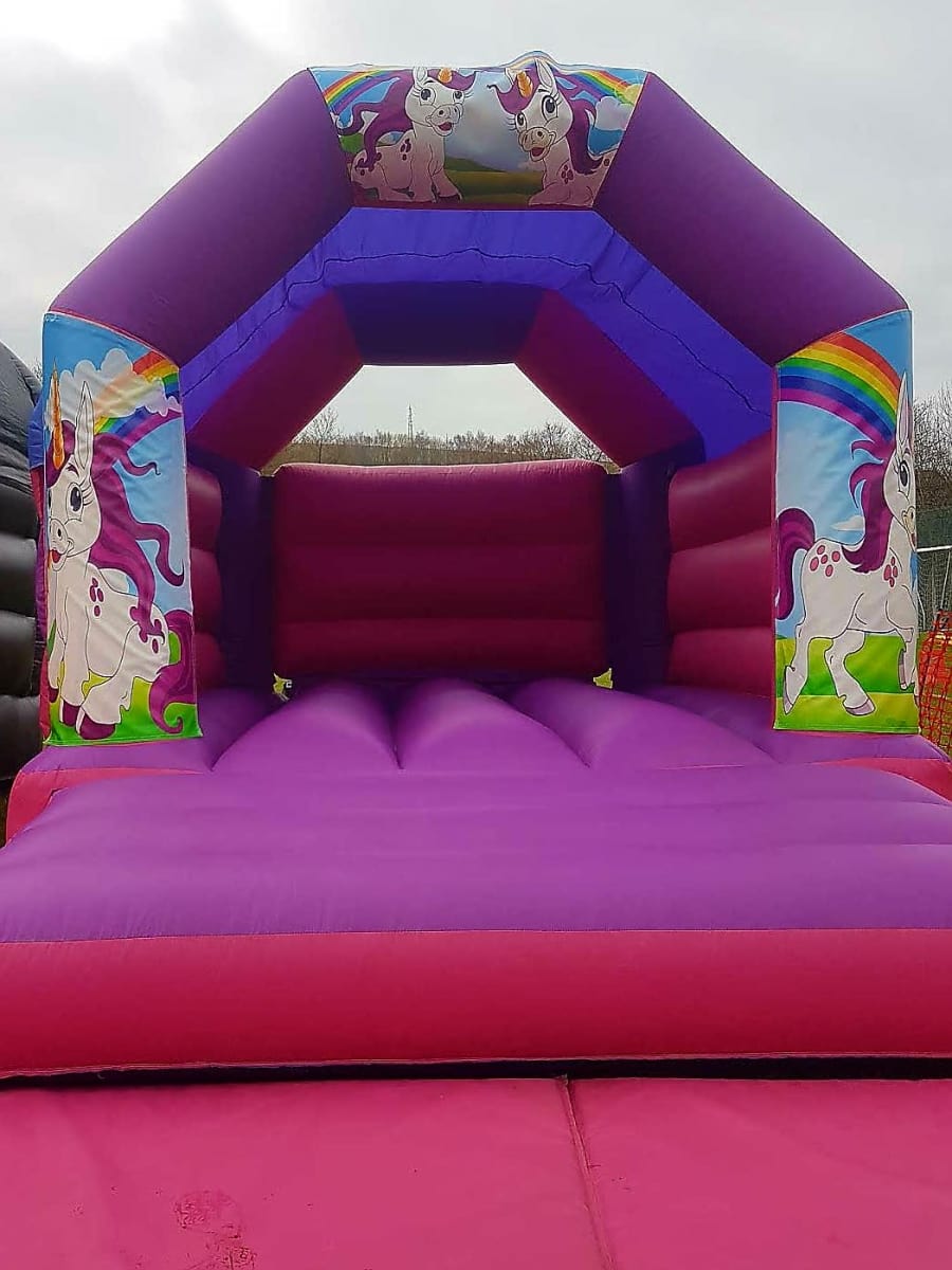 Our Unicorn themed bouncy castle is available for indoor or outdoor hire (just let us know at the time of booking).